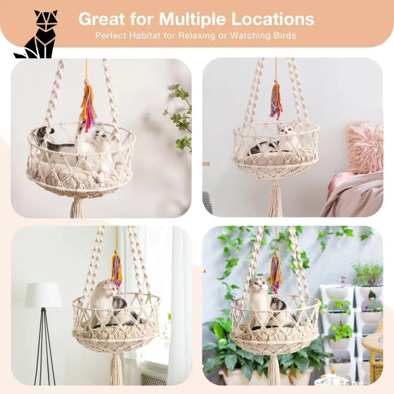 Descubra la máxima comodidad para su gato con nuestra cama colgante de fibra tejida a mano